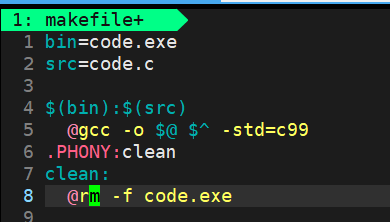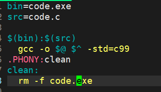 clean:只有目标文件,没有依赖文件,也就是说执行这个方法不需要依赖文件。 - 第五行