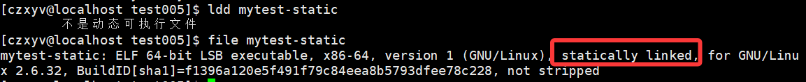 我们也可以通过ldd或file命令看出来,这是静态链接。