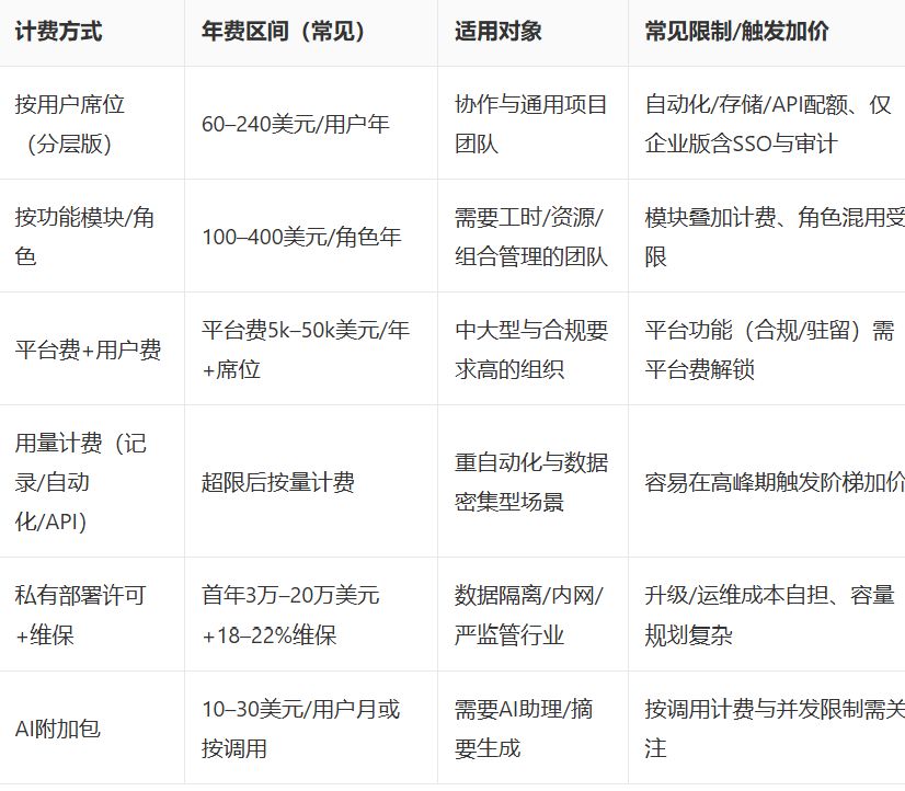 上述区间基于公开价与行业采买经验综合归纳,并非对特定产品的报价承诺 。不同厂商对"协作者/访客"定义差异明显:有的将仅评论/查看的访客免费或低价,有的要求最低包名额 。此外,年付通常较月付更有折扣(8%--20%),多年度承诺可进一步换取价格保护条款,以抵消通胀或功能涨价风险。建议在谈判中争取"价格锁定+席位弹性"的组合。