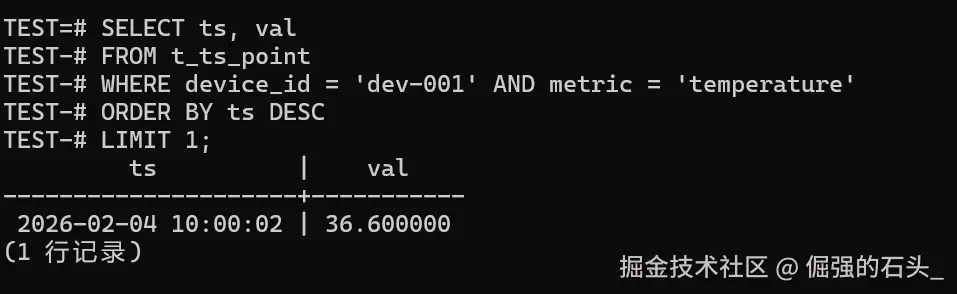 ts是该设备该指标的最新时间; - 如果你后面要做"写入回放 + 灰度切换",这条 Last 查询几乎是回归必测项,用它最容易抓到"漏写/乱序/重复写"。