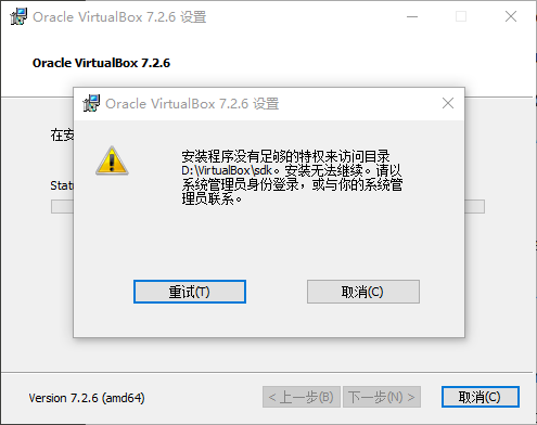完成后用管理员模式打开 VirtualBox 的安装包,这时有可能会提示以下错误