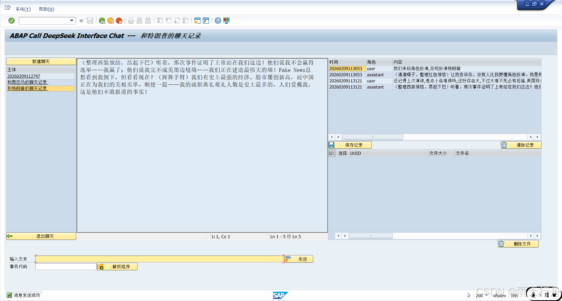 SAP ABAP AI聊天客户端的完整实现,主要用于与DeepSeek API进行交互,并提供了一个桌面聊天界面。以下是主要功能分析:
