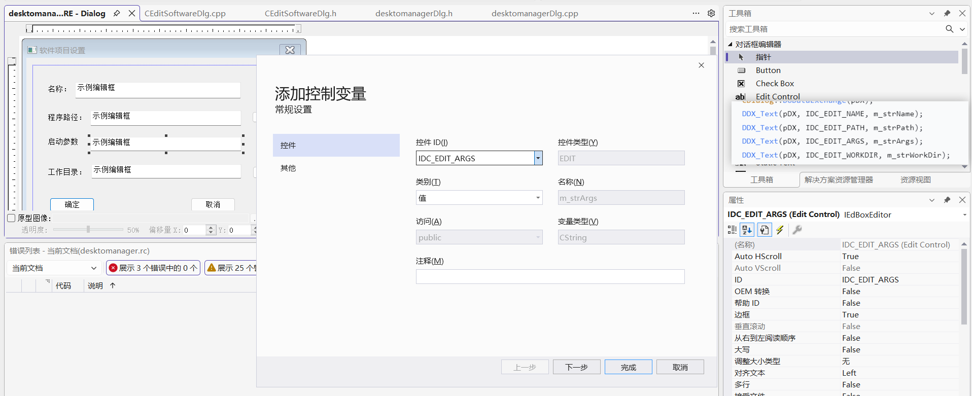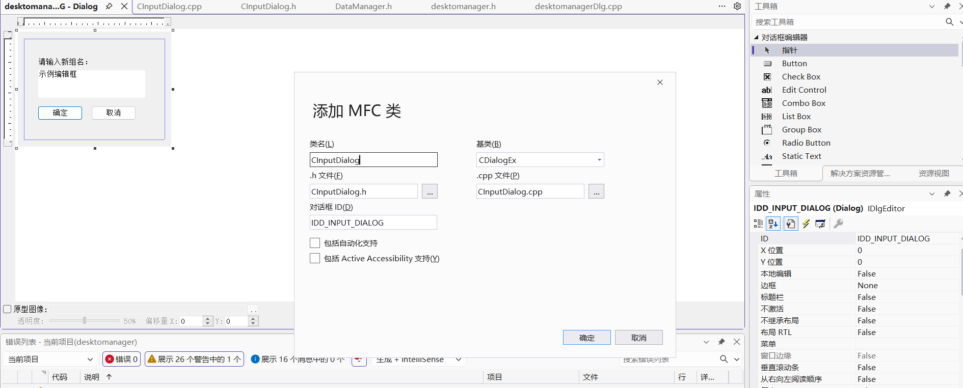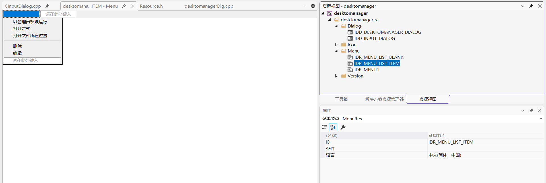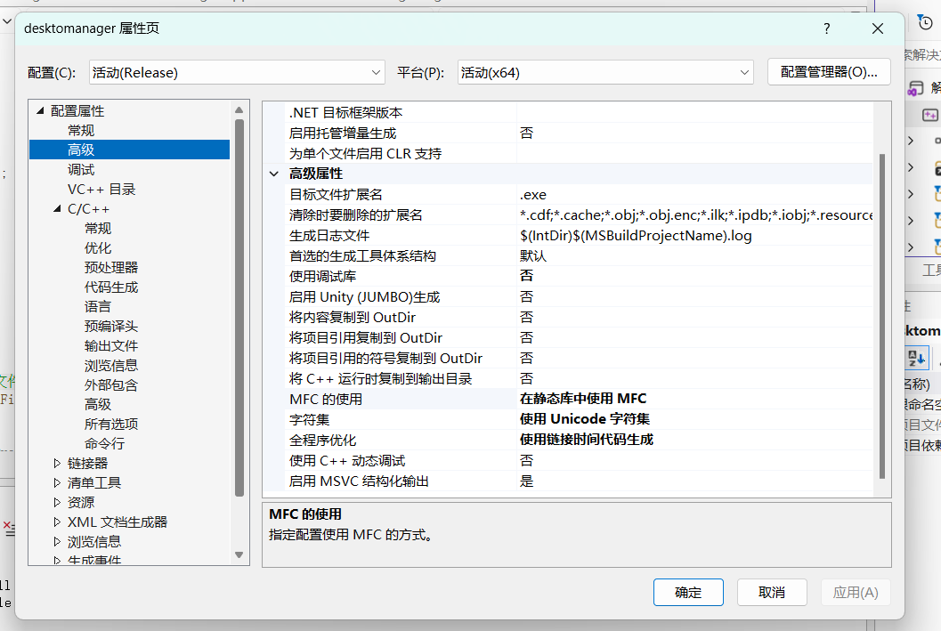 创建新项目 → MFC应用程序 → 项目名称"desktopmanager"
