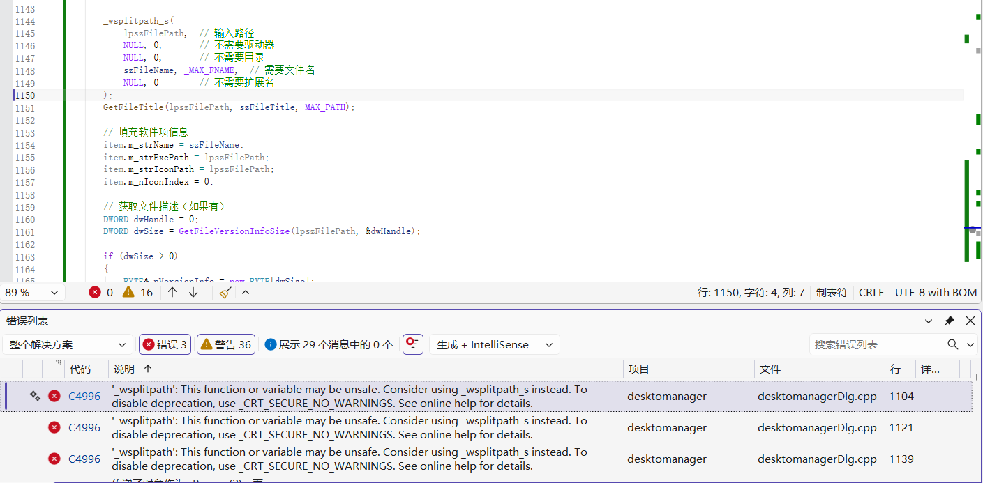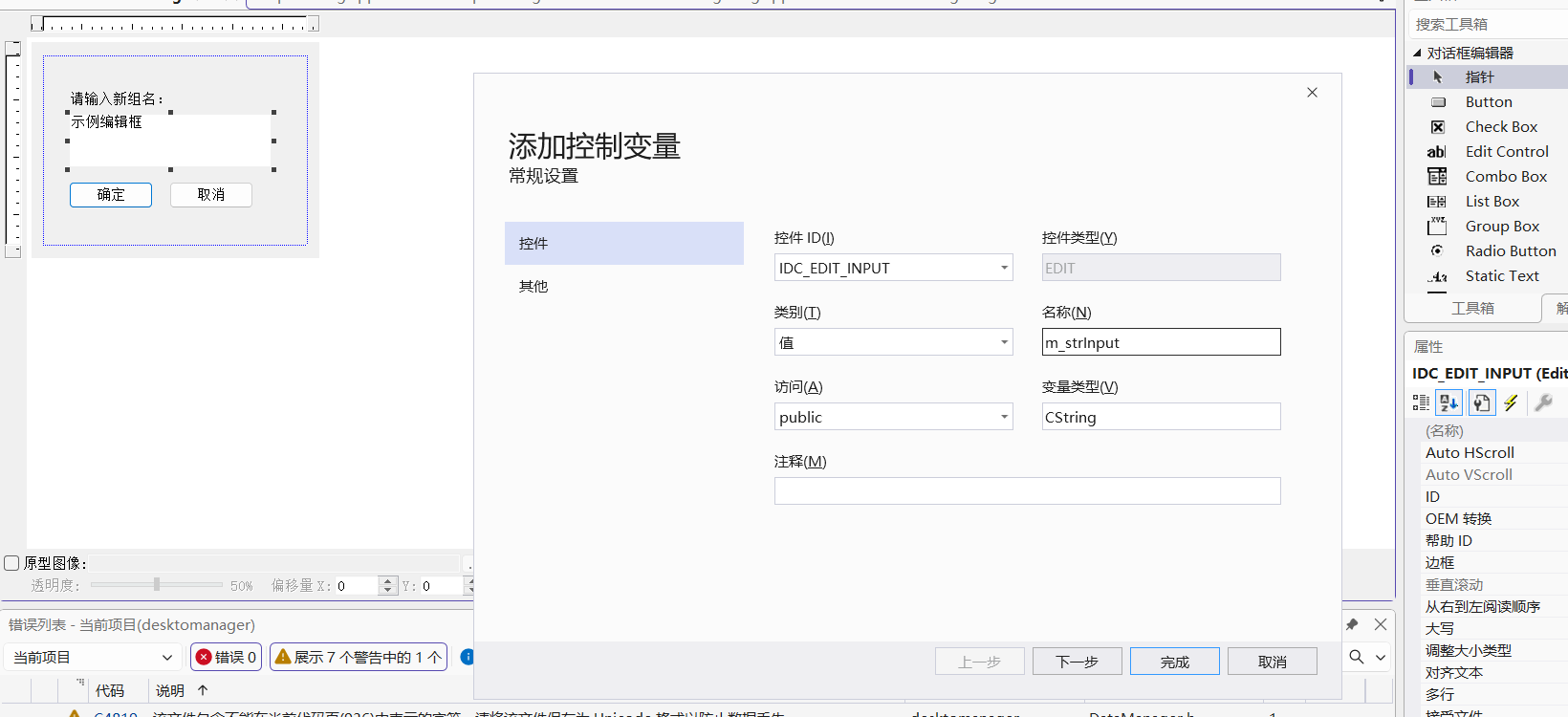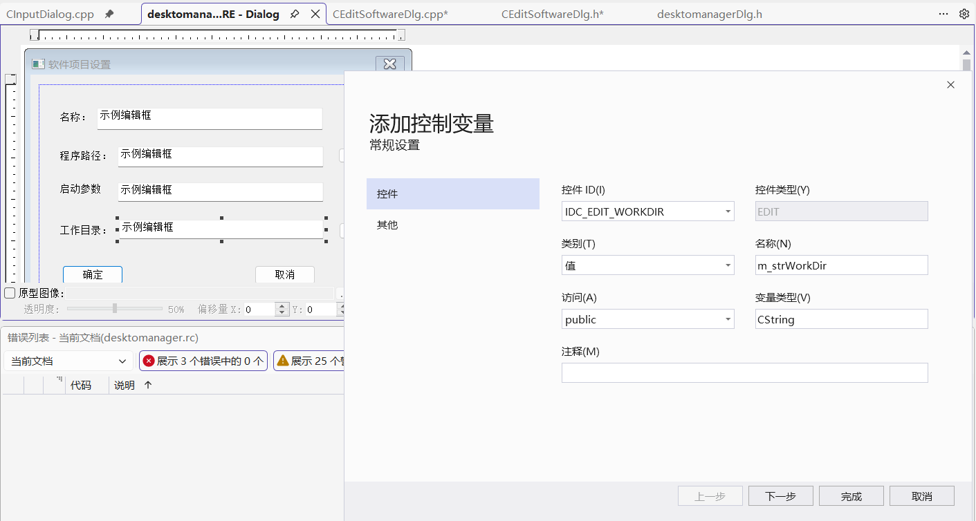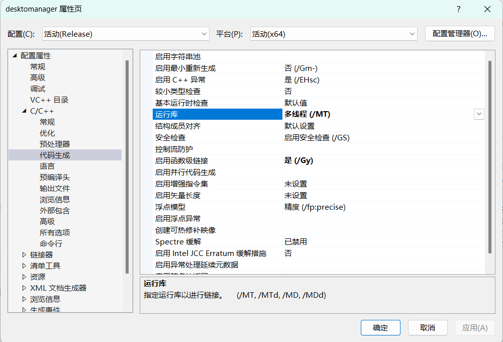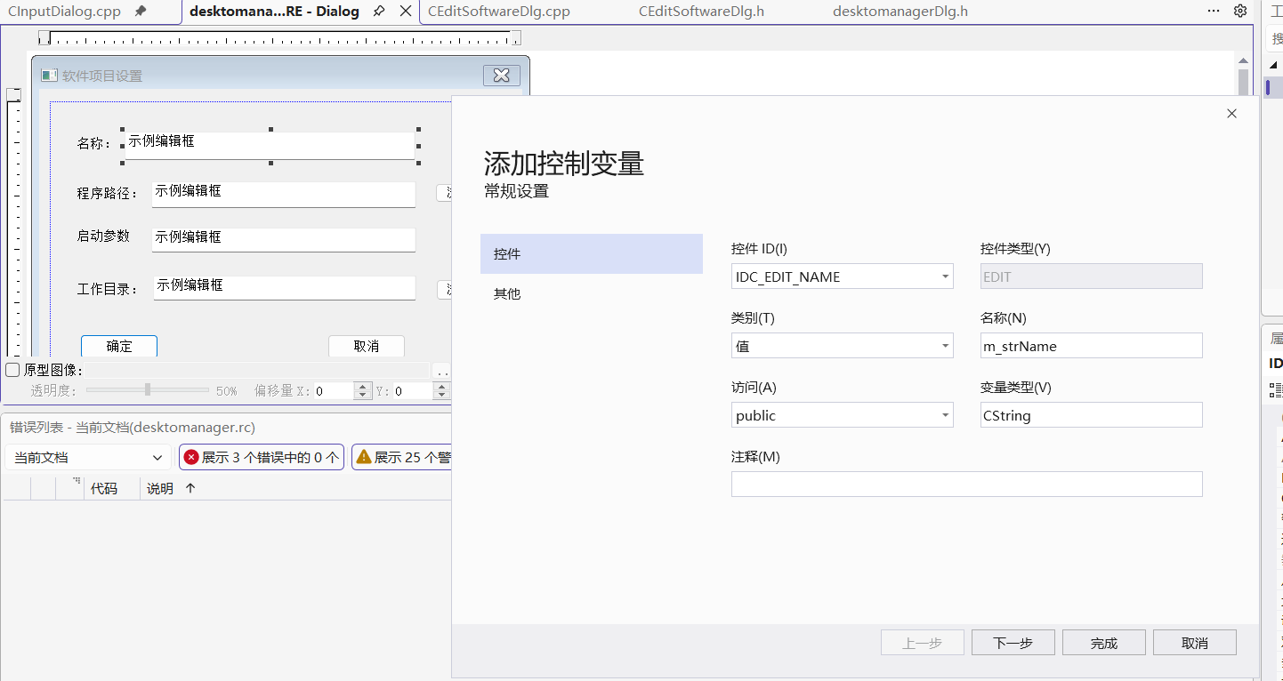 创建新项目 → MFC应用程序 → 项目名称"desktopmanager"