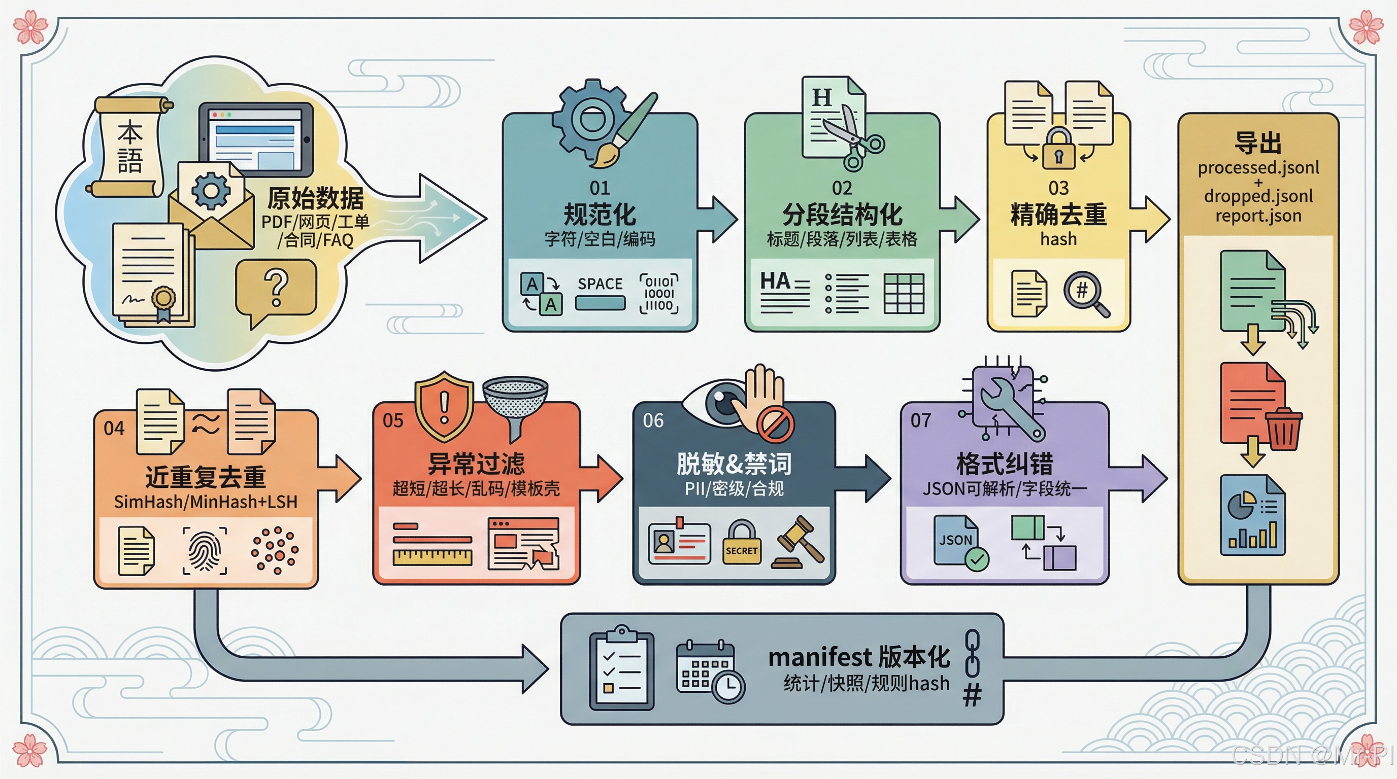 这篇只解决一个工程问题:把原始文本变成"可训练资产"。并且给你两份可交付的东西: