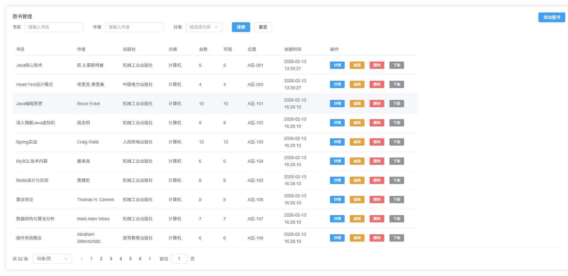 - 管理员视角:可以看到所有图书,包括已下架的,方便管理