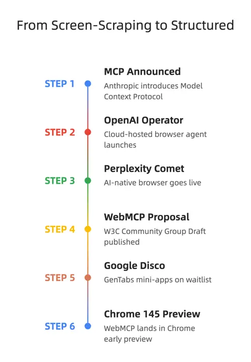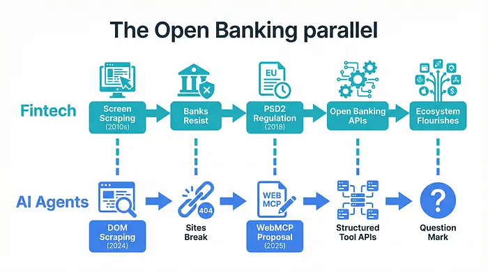 从屏幕抓取到结构化 API 的转变并不新鲜。金融科技已经证明了这种模式。WebMCP 正在将其应用于整个网络。