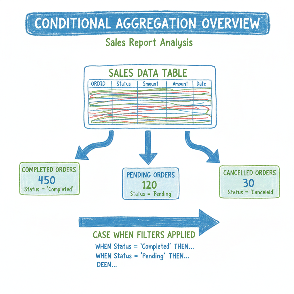 模式很简单:将 CASE WHEN 放在任何聚合函数内部。掌握这项技术,你将为任何分析报告任务编写更清晰、更快速的 SQL。