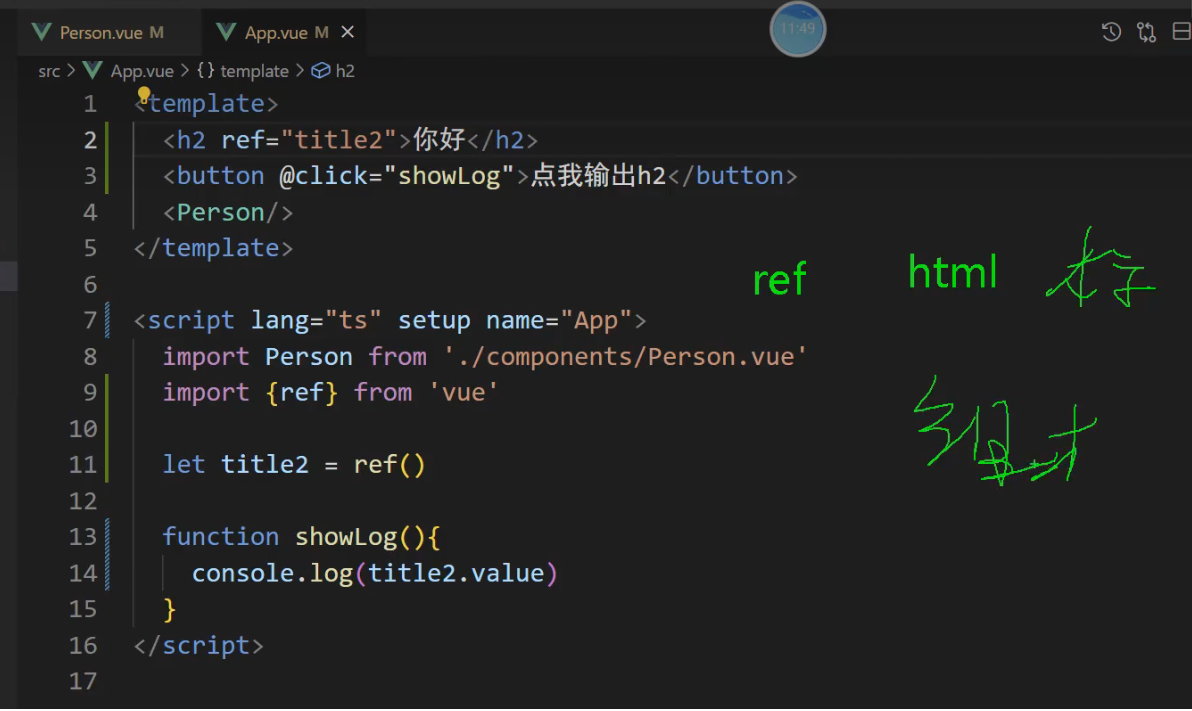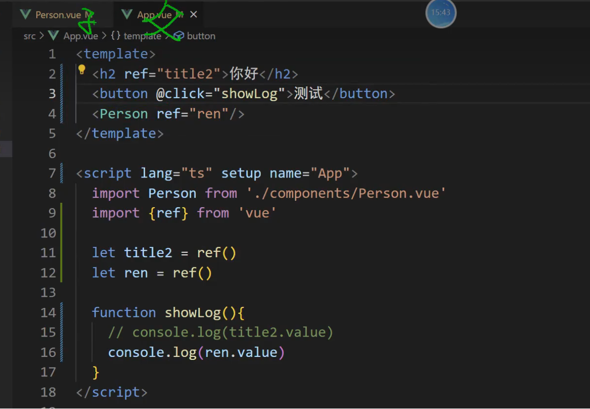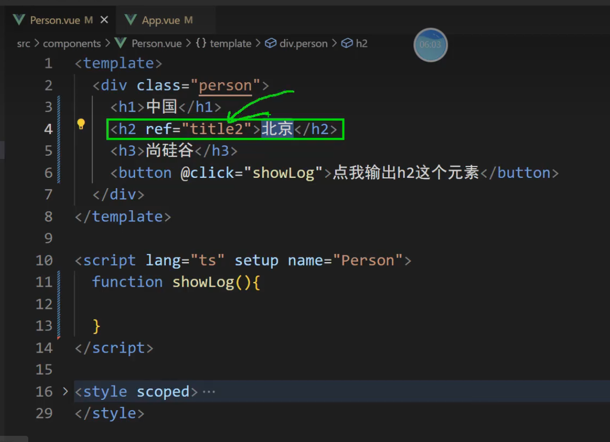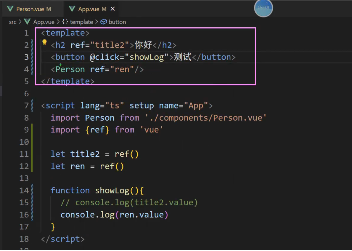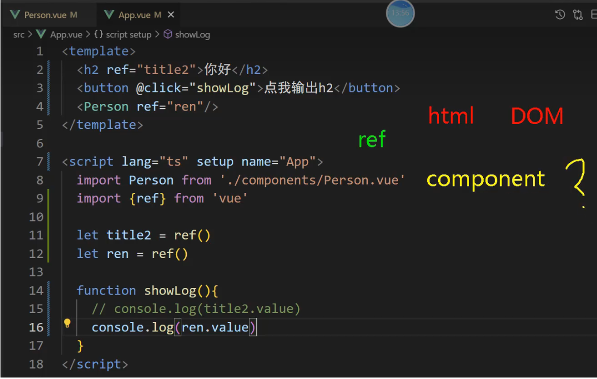 Person里面写的北京怎么变成您好了?这可怎么办?不用id,使用ref解决