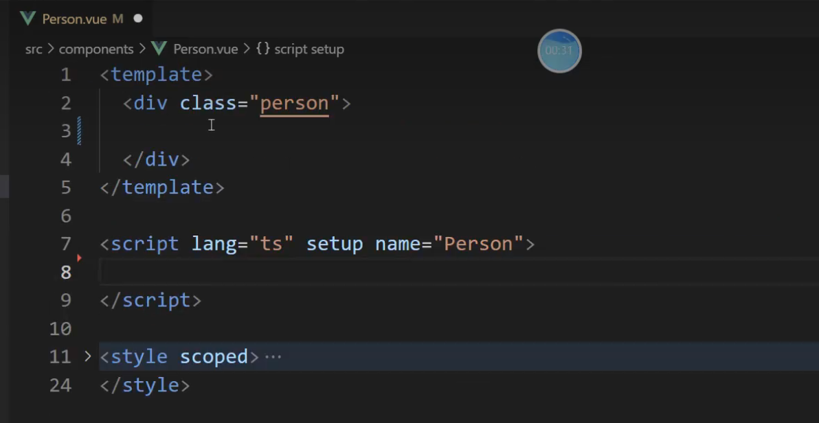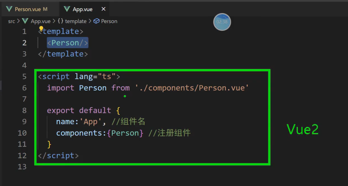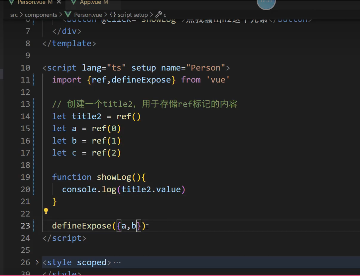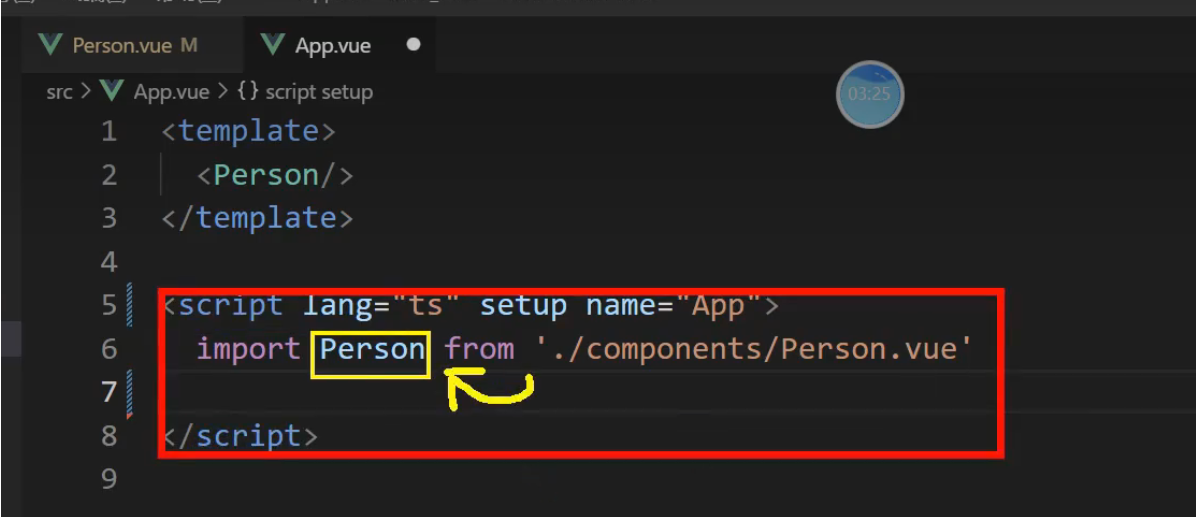 vue3 引入的Person会自动return,return结束,模板里面就可以使用了