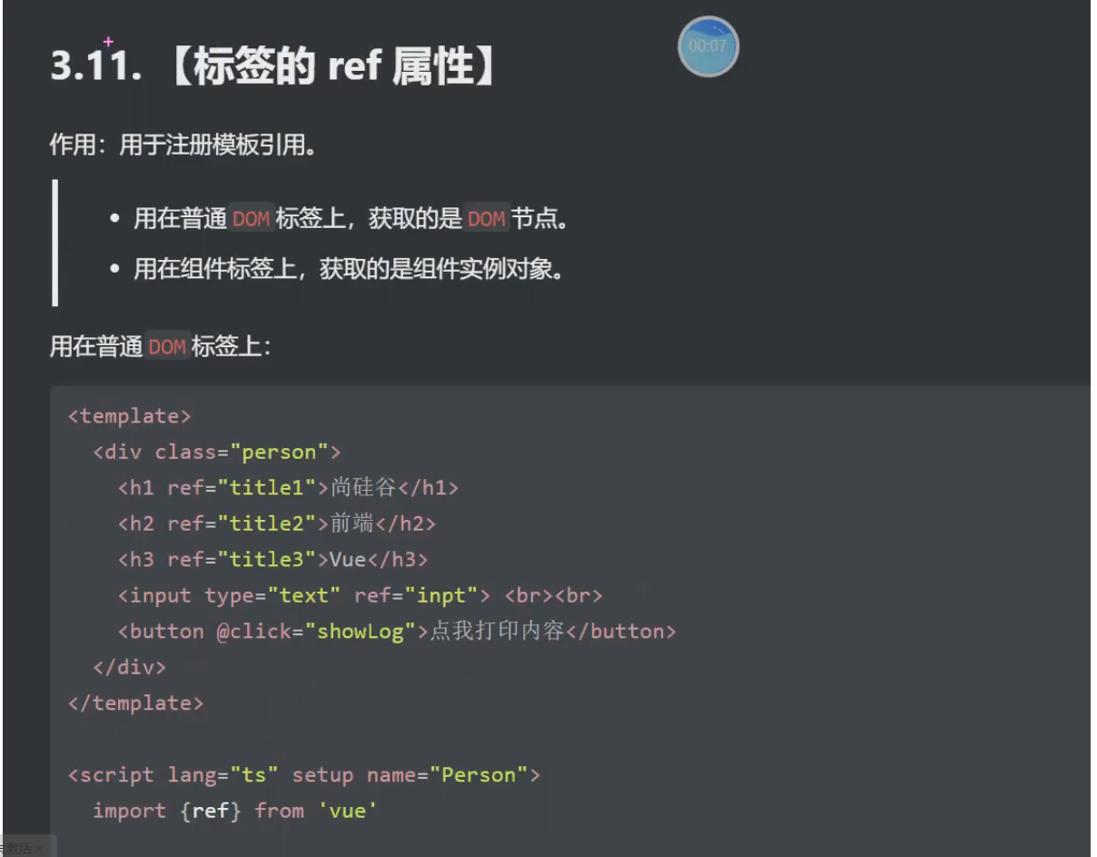 将 ref 放在html上拿到的是DOM,在将 ref 放到组件上,我们能拿到上面组件实例对象