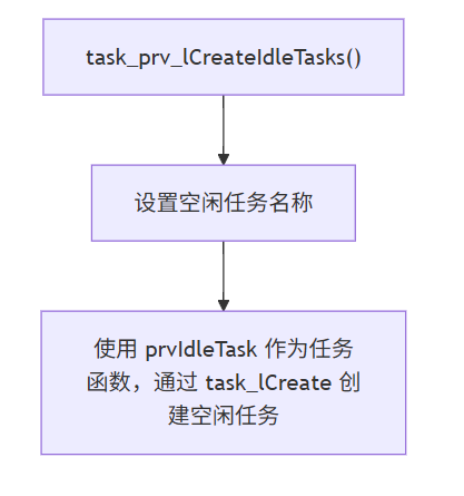 // 3.7 主空闲任务函数,运行在启动调度器的核心上,负责回收已删除任务的内存、执行低功耗钩子等,系统必需的后台任务
