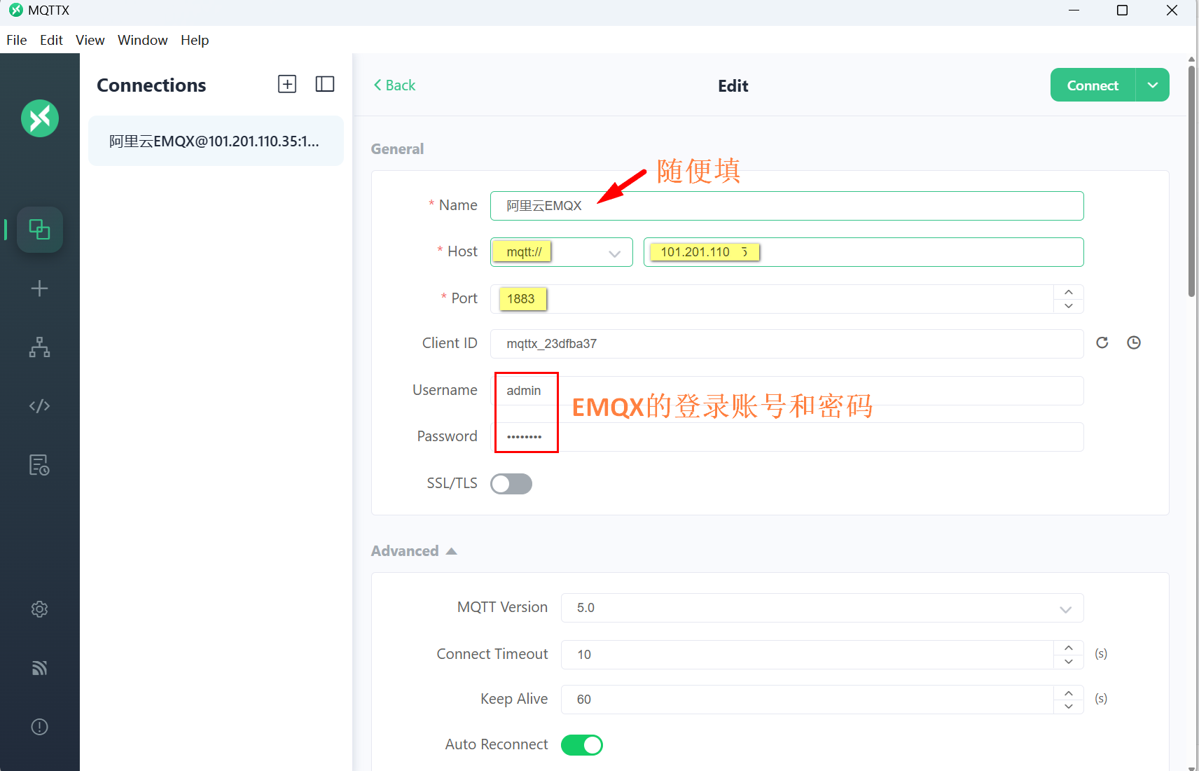 我们不使用EMQX控制台页面下的websocket客户端,我们使用MQTTX客户端(桌面端软件)来测试一下。
