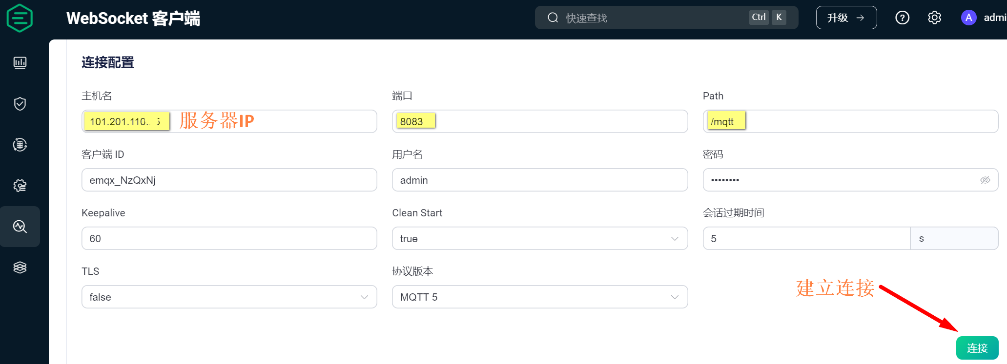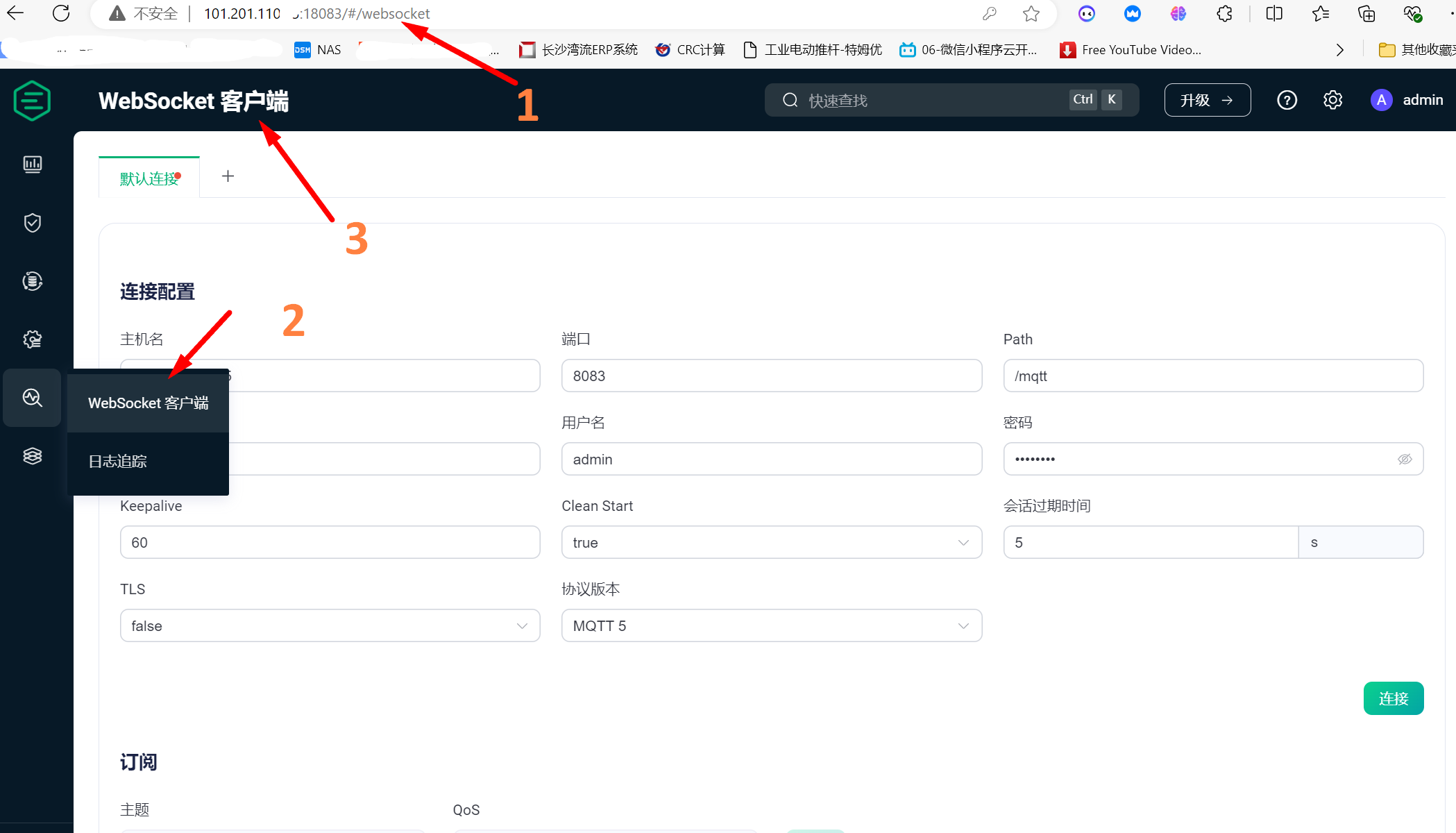 WebSocket 客户端是网页版的 MQTT 工具,可以直接在里面测试MQTT功能,比如可以建立MQTT连接,发布消息,订阅消息。
