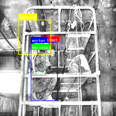 安全装备检测是高空作业安全监控的第一道防线,主要包括安全帽、安全带、防护眼镜等个人防护装备的检测。我们的系统基于FCOS-HRNetV2P,对这些安全装备进行精准识别。