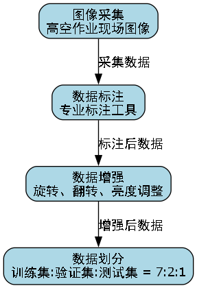 数据采集模块负责从各种来源获取高空作业场景的图像数据,包括固定摄像头、移动设备等。预处理模块则对原始图像进行增强、标注等操作,为后续的模型训练提供高质量的数据支持。