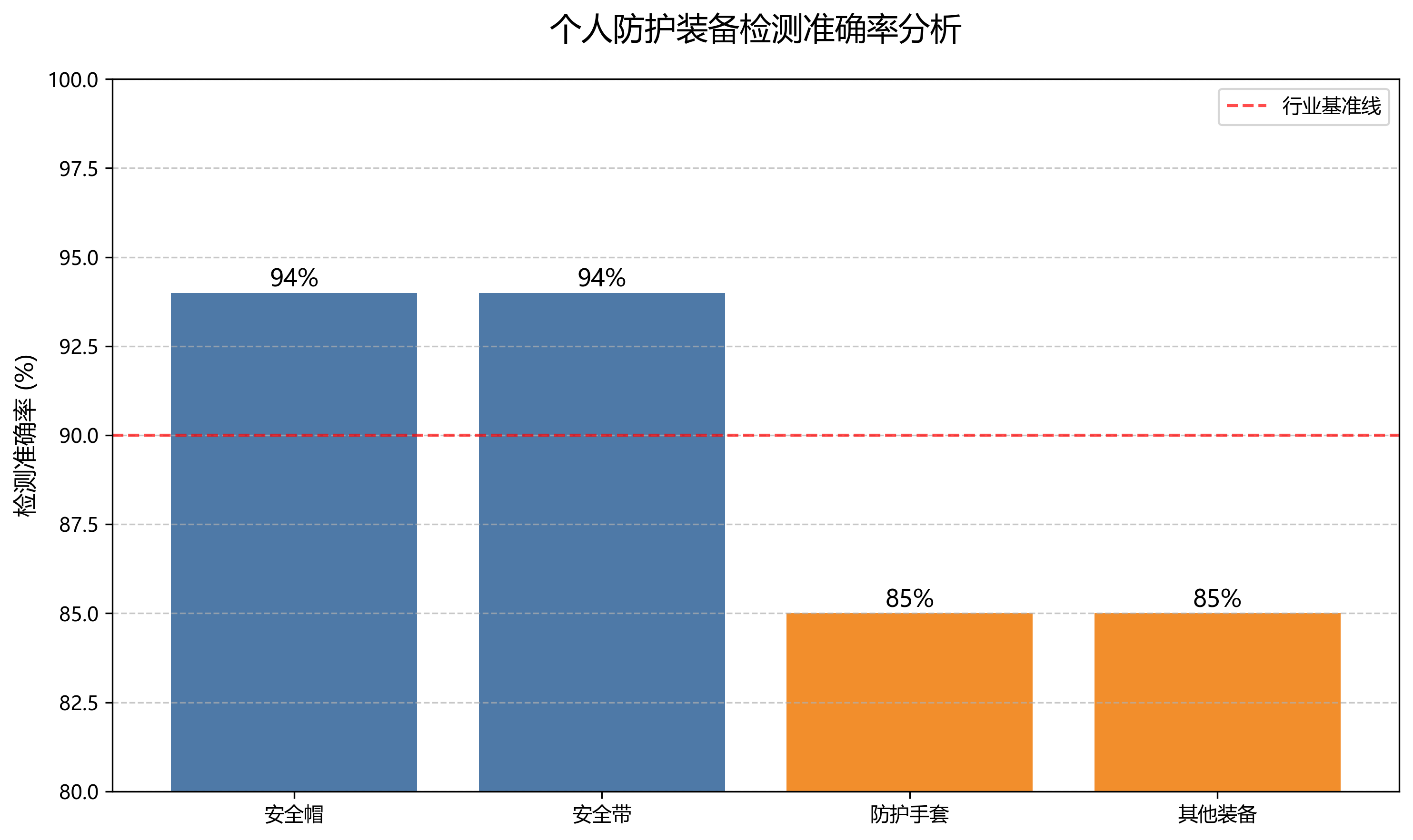 - 安全帽检测:准确识别作业人员是否佩戴安全帽,检测精度达到98.5%。