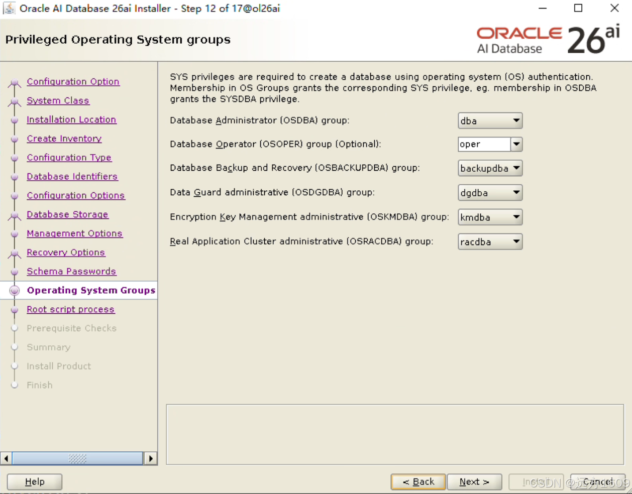 54322(dba),54323(oper),54324(backupdba),54325(dgdba),54326(kmdba),54330(racdba)