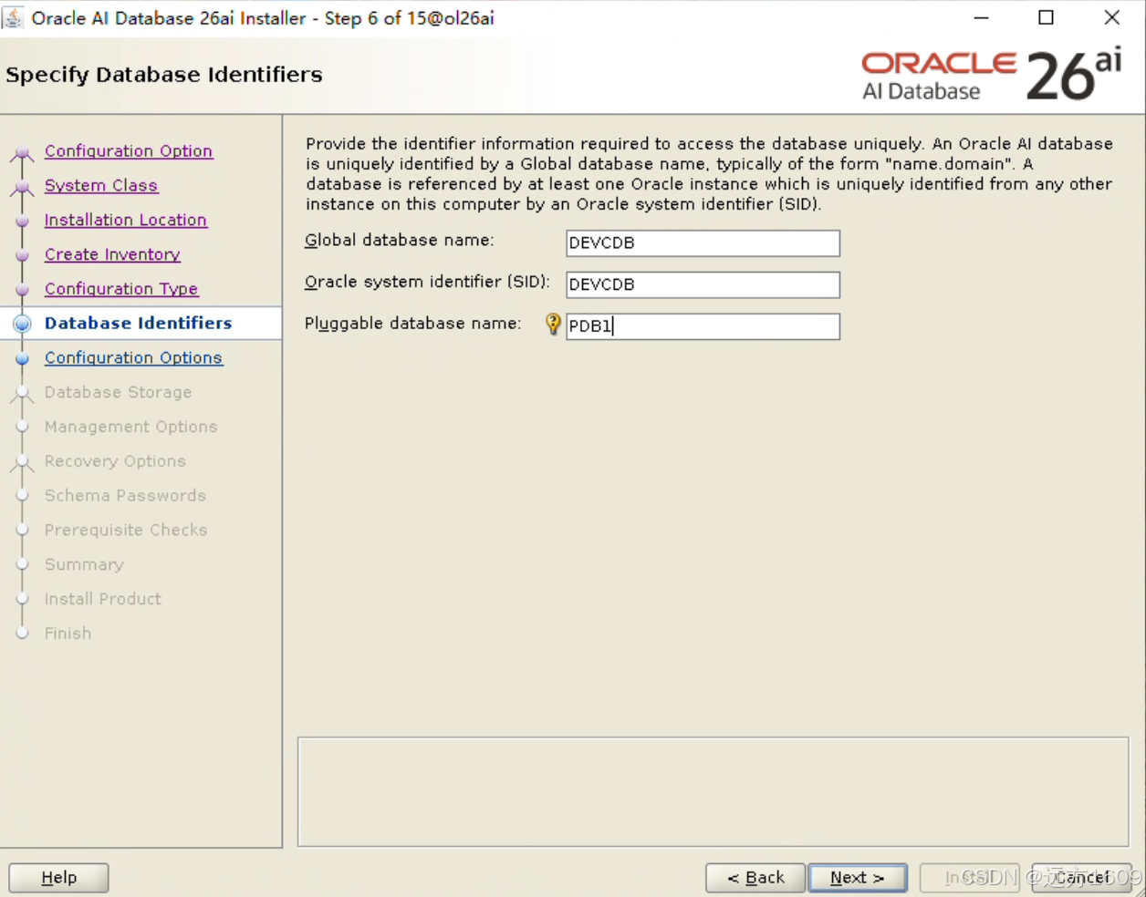 选第一项,直接安装和配置CDB、PDB;选择第二项之后安装完毕后需要DBCA建库