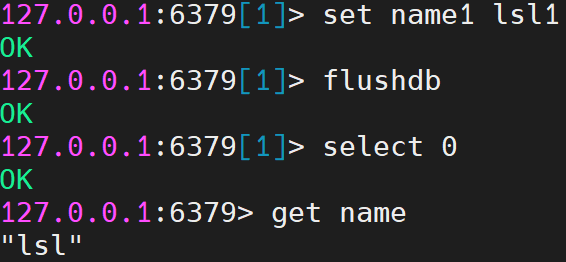 作用:仅清空当前所在数据库中的所有数据,不会影响其他库。flushdb