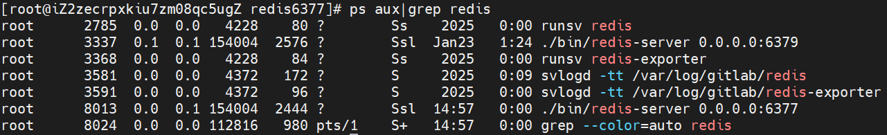 查 "包含 redis 字符串" 的进程(Redis默认使用6379端口)