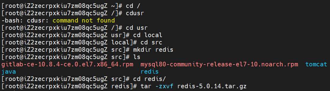 #解压到当前目录,生成 redis-5.0.14 文件夹