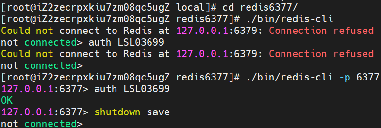 #如果要停止非默认端口的Redis,需要在命令中指定端口