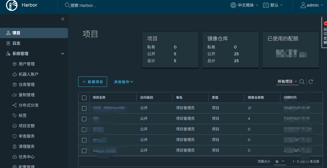 搞定可以登录进去了,这个时候如果大家想要用的话(如果你不是用安全的方法删除镜像文件,而是像我一样直接删除文件的话),最好就把全部镜像删除,重新从远程服务器的harbor上拉取镜像再备份一次。