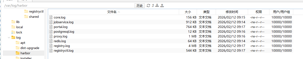 harbor 默认日志文件放在 /var/log/harbor 下