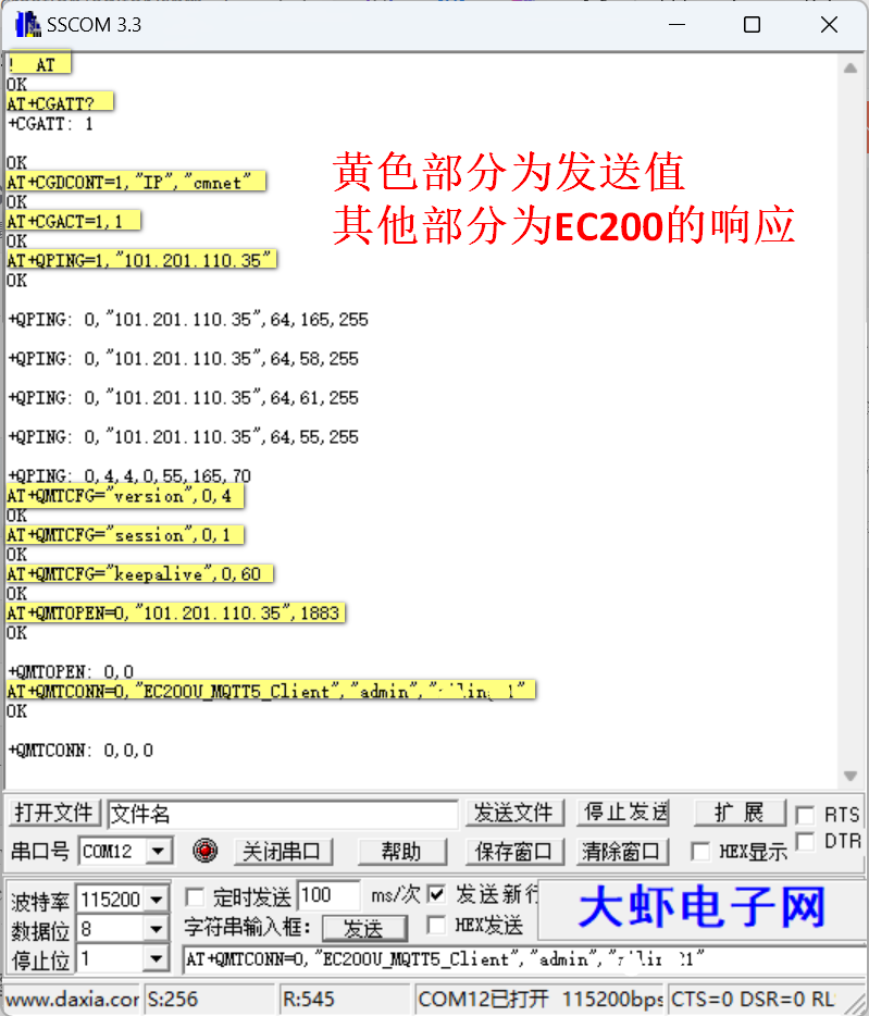 1、通过EC200U建立与EMQX服务器的MQTT连接。