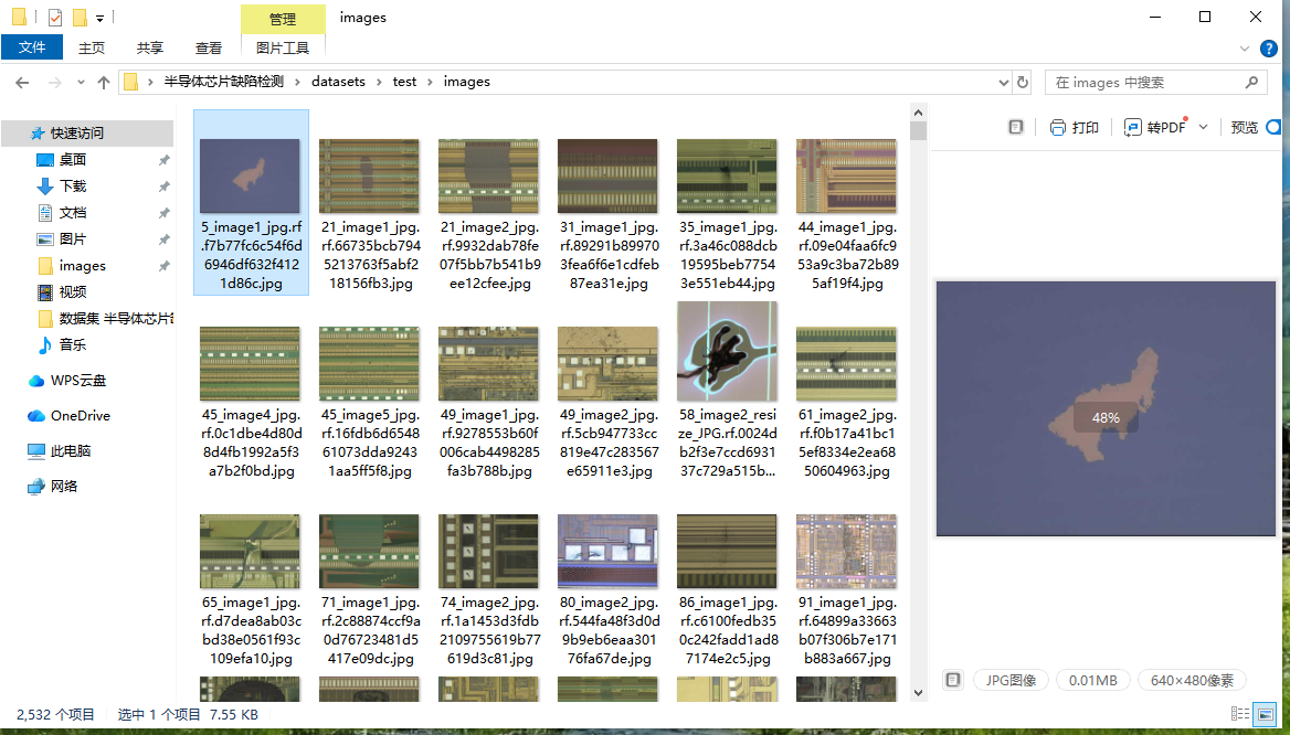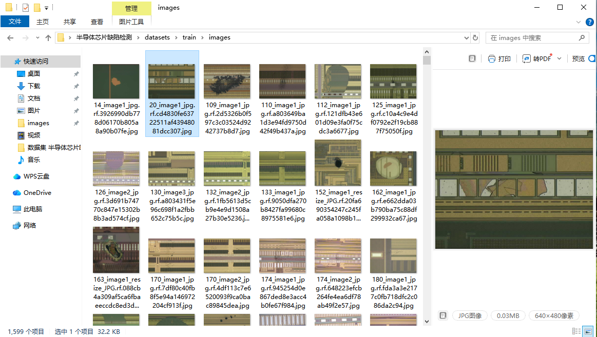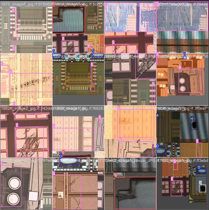 训练集:共1599张图像,图像清晰、缺陷标注精准,涵盖芯片生产过程中常见的各类缺陷类型,能够为模型训练提供充足的样本支撑,帮助模型快速学习缺陷特征。