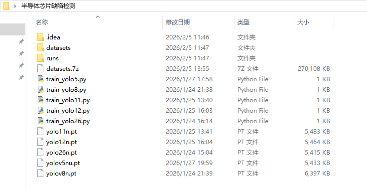 本文分享的半导体芯片缺陷检测数据集,样本量级充足、划分合理、标注规范,适配YOLO系列目标检测模型,可直接应用于芯片缺陷检测相关的技术研究、模型训练与工程实践。结合基于该数据集训练的5个YOLO版本(v5、v8、v11、v12、v26)的完整训练结果,能够为从业者提供一站式的数据集+实验参考支持,有效解决芯片缺陷检测领域数据集稀缺、模型对比不便的痛点。