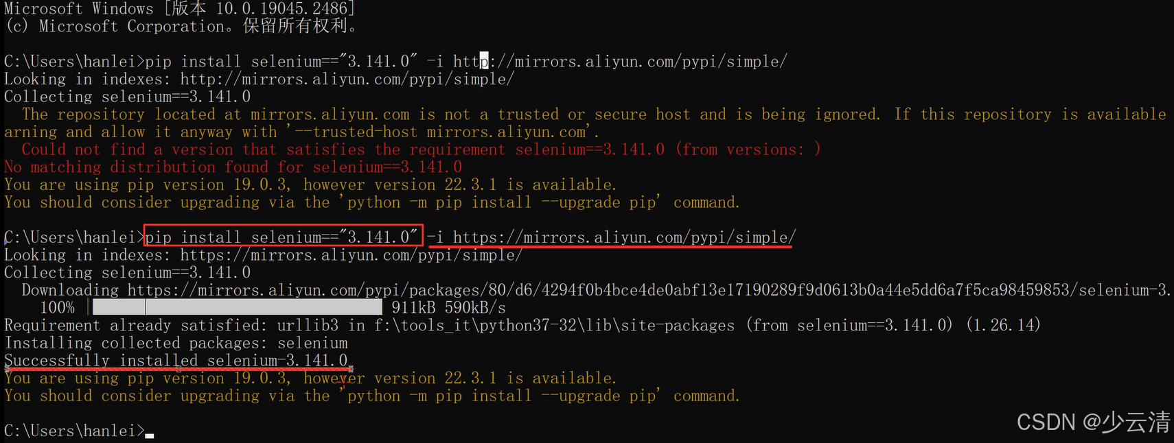 说明:在安装selenium时,前提是Python3.5以上版本安装完毕且能正常运行