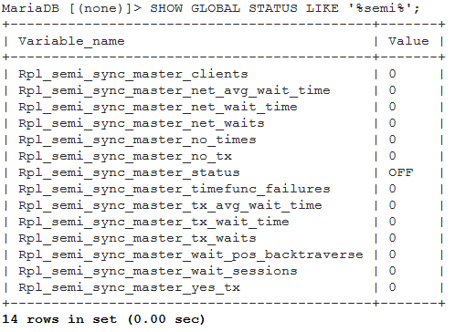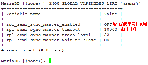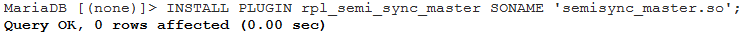 主节点安装插件:INSTALL PLUGIN rpl_semi_sync_master SONAME 'semisync_master.so';
