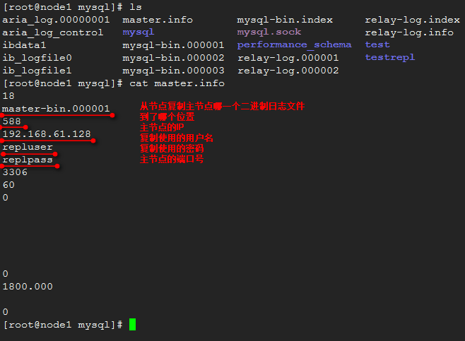 master.info:用于保存slave连接至master时的相关信息,如账号,密码,服务器地址等