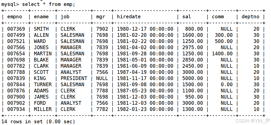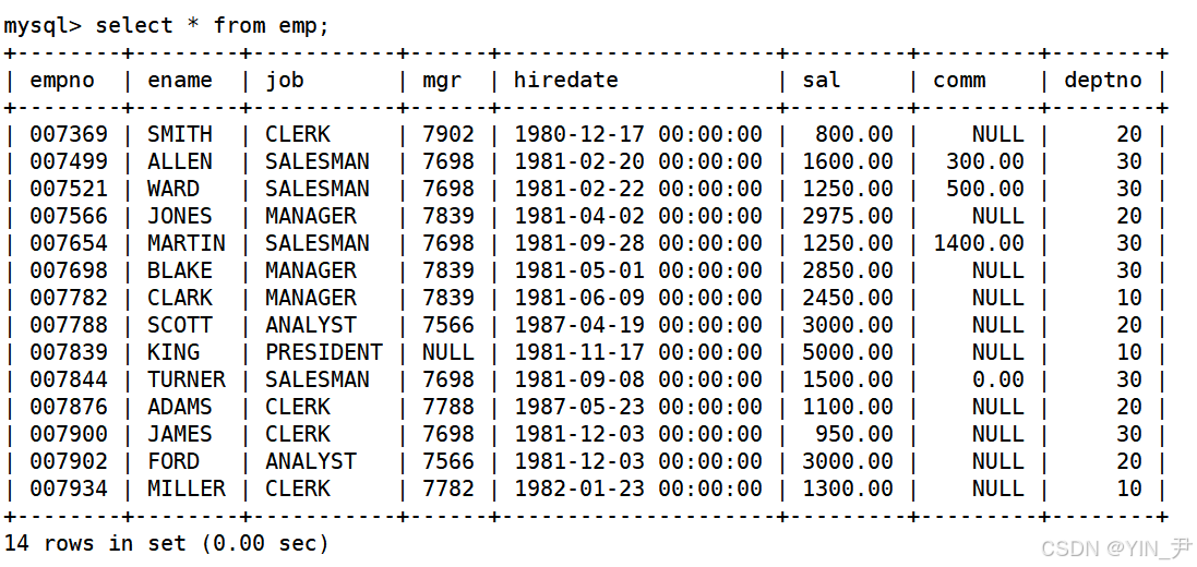 然后我们要知道,领导也是该公司的员工,所以他的信息 也在emp表中