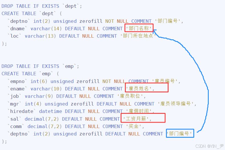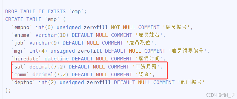 `comm` decimal(7,2) DEFAULT NULL COMMENT '奖金',