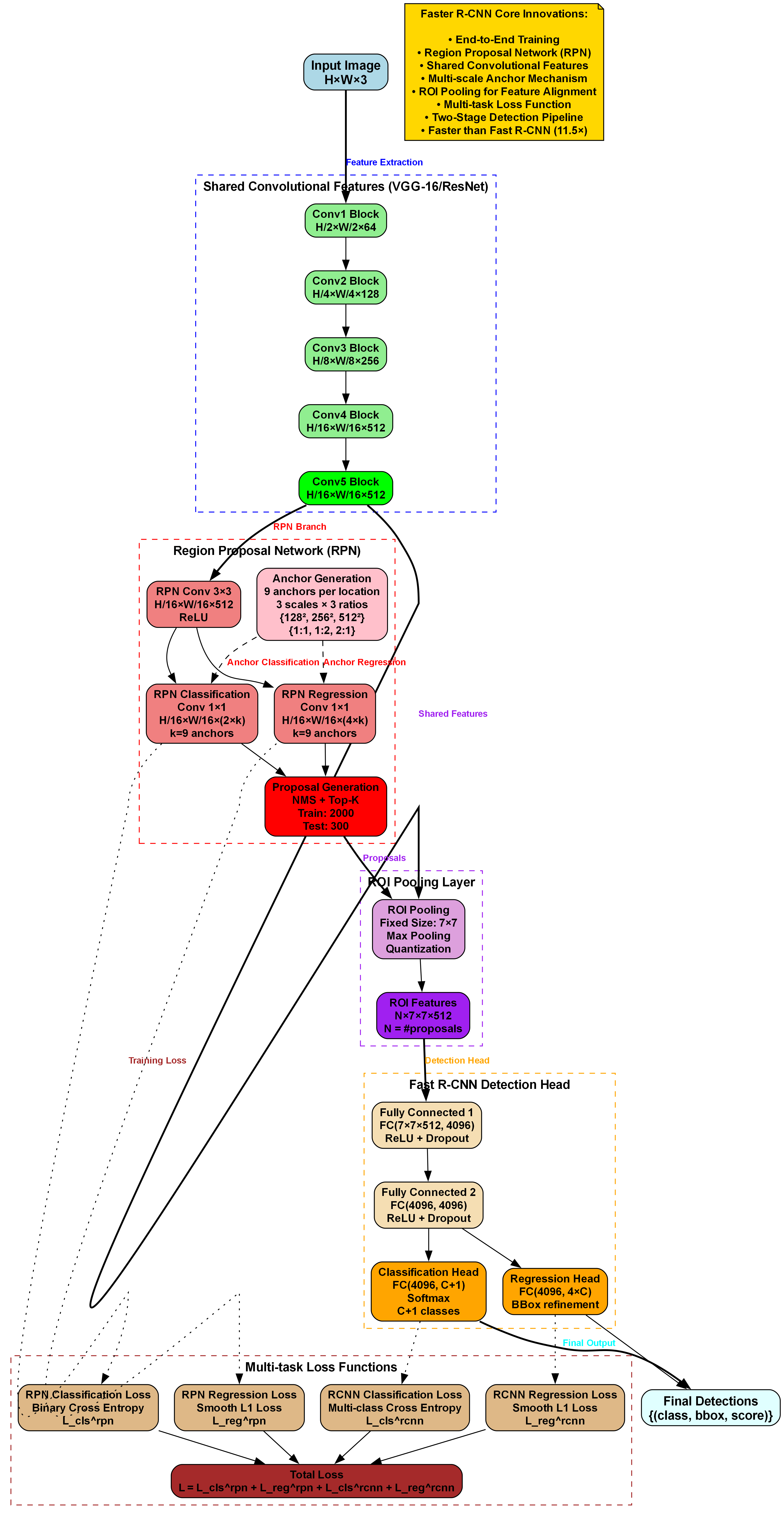 Faster R-CNN作为一种经典的两阶段目标检测算法,在目标检测任务中表现出色。然而,直接将其应用于人员跌倒检测仍存在一些挑战,如小目标检测、实时性要求等。针对这些问题,我们对原始Faster R-CNN模型进行了多方面改进。