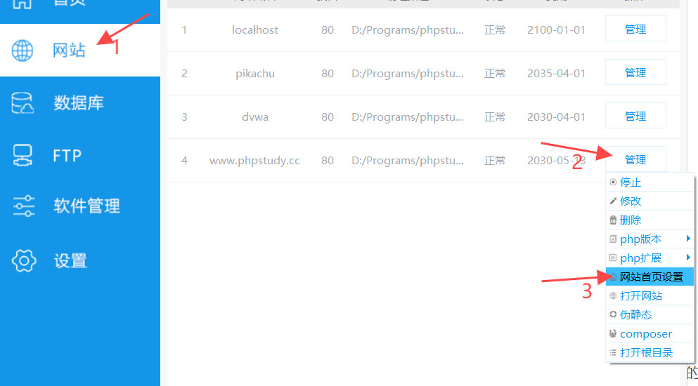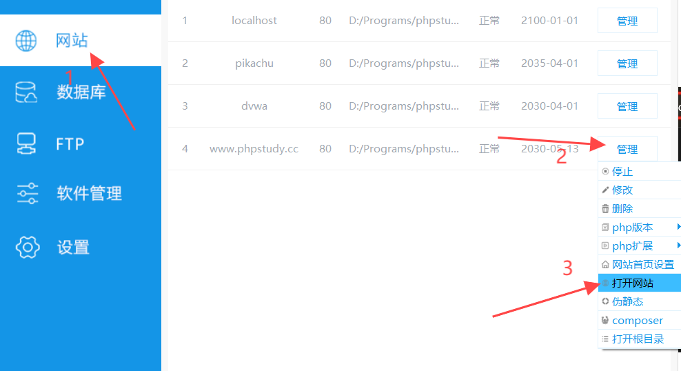 1.填写域名时,必须是三级域名,否则无法从 phpstudy 打开网站。