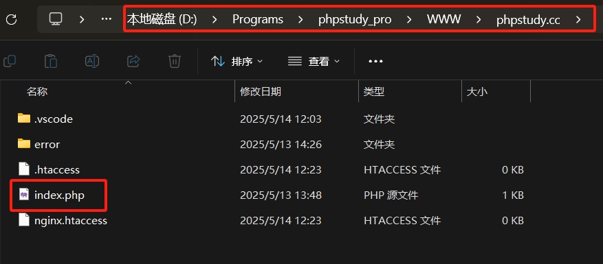 进入创建网站的根目录,按照创建网站的主页规则新建文件 index.php