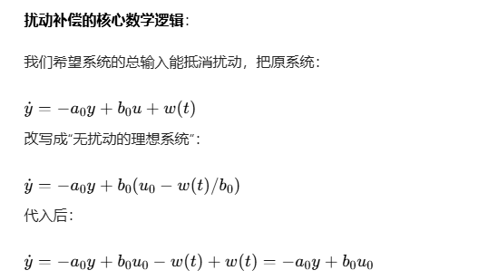 数学本质------用观测到的 z3 代替真实扰动 w(t),直接除以 b0 补偿。