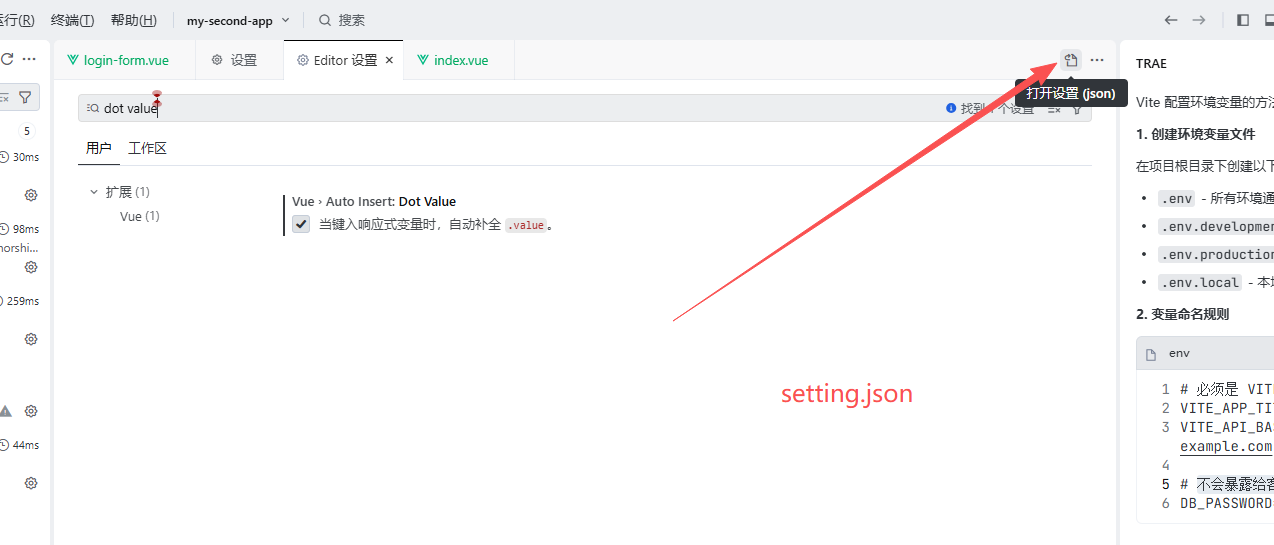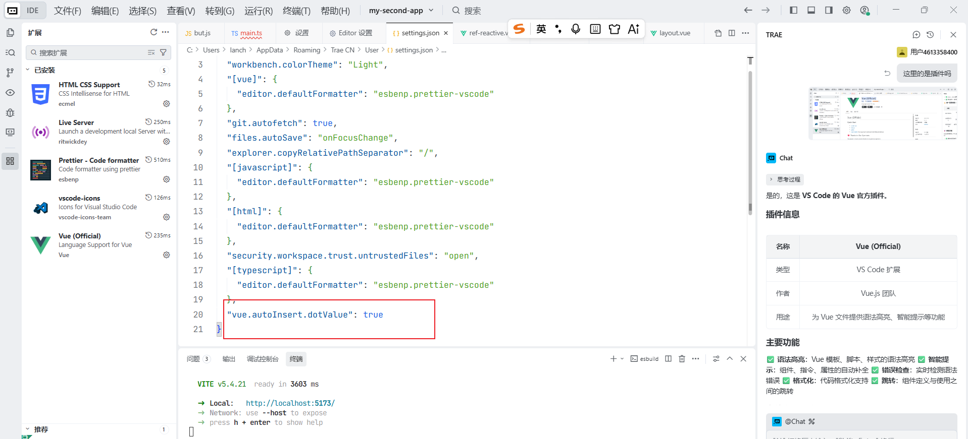 输入dot value,勾选自动补全,注意自动补全需要提前下载Vue (Official)插件