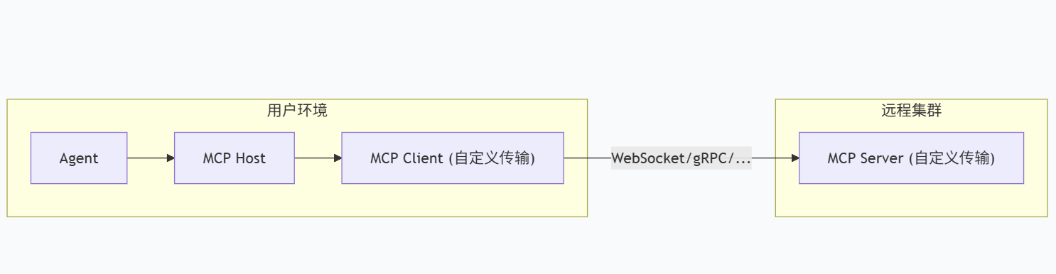 MCP 支持通过插件化传输层使用自定义协议(如 WebSocket、gRPC、消息队列等),扩展通信能力。