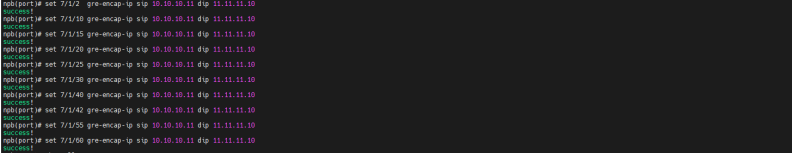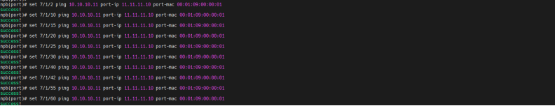 | 测试步骤: | 1. 检查设备中端口描述功能的配置是否可以成功下发并显示对应端口描述,随机选择10个端口进行端口描述下发及取消操作; 2. 随机选择10个端口去检查端口强制连接配置是否可进行设置和取消操作; 3. 随机选择4个端口去检查端口环回配置是否可进行设置和取消操作,仪表发送流量,设置环回策略配置验证是否环回操作,最终再将流量发回给仪表,1口进4口拷贝并转发,触发环回策略将4倍流量返还给仪表; 4. 检查端口使能配置是否可以设置和取消; 5. 检查设备中端口ping功能的配置是否可以成功配置及取消,随机选择10个端口进行对应验证; 6. 检查设备中端口gre封装功能的配置是否可以成功配及取消,随机选择10个端口进行对应验证; |||