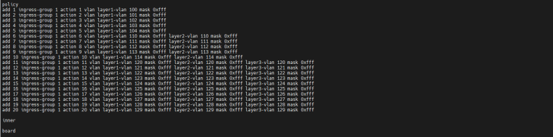 * 仪表生成的包含layer1_vlan以及layer2_vlan数据的流量可被设备正确识别,并分配给指定端口组进行正确转发;