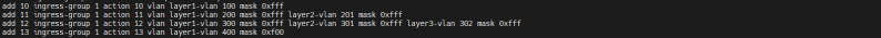 * 设备可正确根据规则识别对应vlan掩码规则下的流量,并将流量匹配到对应的端口组进行转发;