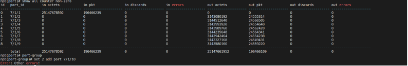 在port-group模式下进行set 哈希配置时,端口组删除端口后,端口组接收流量内部依旧会被哈希使用此端口进行均分流量,端口组内端口未随配置进行更新