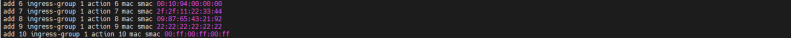 * 设备可正确匹配到5种不同的dmac流量并通过对应5个端口组转发;