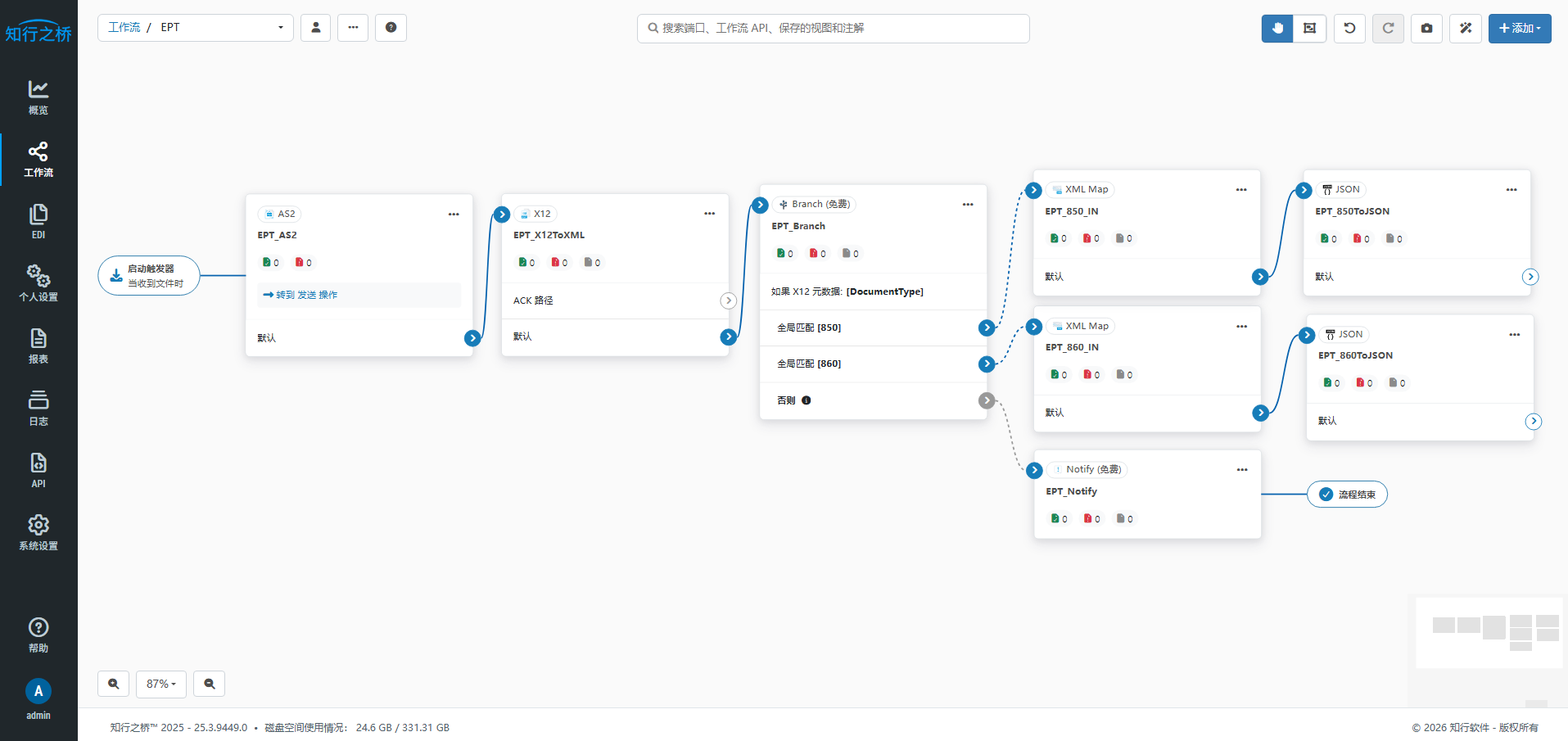 在本项目中,知行之桥 EDI 系统通过可视化工作流设计,实现了: