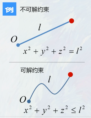 (限制速度,也限制位置) - 不可积分的微分约束 x ˙ − y ˙ z = 0 ⟶ d x − z d y = 0 \dot{x} - \dot{y}z = 0 \longrightarrow dx - zdy = 0 x˙−y˙z=0⟶dx−zdy=0